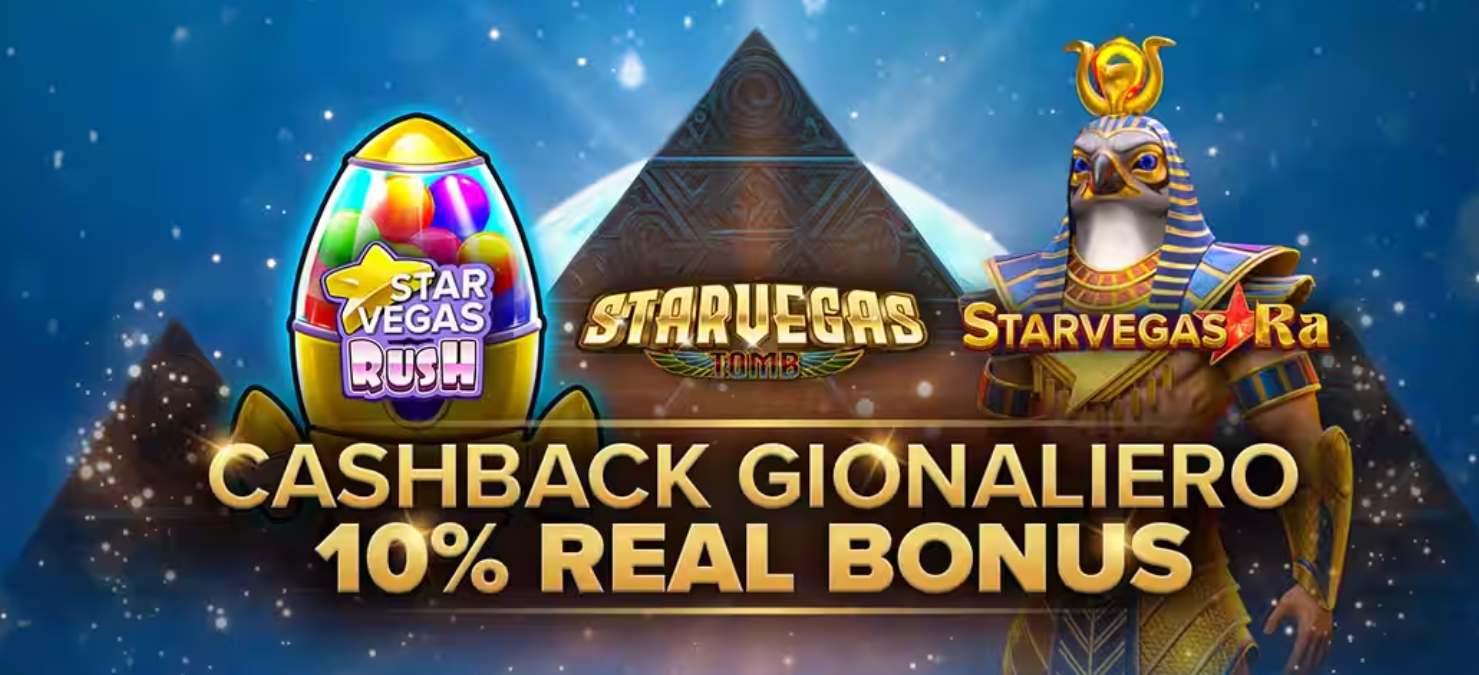 The StarVegas Daily Cashback promotion runs from June 30th to July 7th, 2025. Players who enjoy exclusive StarVegas slots can receive daily cashback on losses. Players who participate will receive 10% cashback on non-winning bets up to €100 when playing StarVegas Ra, StarVegas Tomb, and StarVegas Rush.