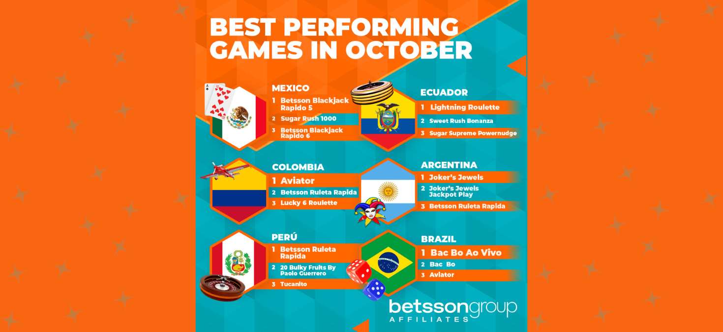 October marked the long-awaited return of table games across Latin America. Betsson Blackjack Rápido, Ruleta Rápida, and Lightning Roulette reintroduced variety to rankings that had been dominated by slots for six straight months.